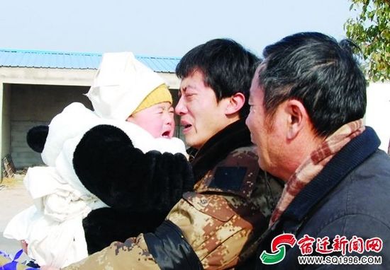 3年前,曹冷在回家探亲时经人介绍,和沭阳县汤涧镇的黄书利姑娘建立了恋爱关系,相识相爱结婚后,生下了可爱的宝宝。为了不影响曹冷在部队工作,黄书利和奶奶、公婆生活在一起,她在家里带孩子,孝敬公婆和98岁的奶奶。惊闻丈夫在部队牺牲了,25岁的黄书利肝肠寸断,哭干了泪水。“你说再过两年就转业回家和我一起创业的,现在你去了哪里?曹冷,你回来吧!曹冷,我们娘儿俩今后不能没有你!”声声悲切地呼唤,令在场的所有人泪水如注。