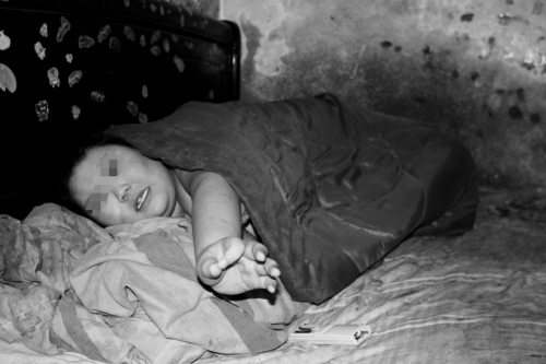沈阳晚报记者来到韩先生租住的二楼一间客房内。打开房门,一股强烈的异味扑鼻而来。地板上黏黏的,地上堆着很多酒瓶子和塑料瓶。男孩正躺在床上看电视。由于屋子里气温较低,男孩用已经看不出本来颜色的棉被紧紧地包裹着身体,只露出一个脑袋。“这孩子春夏秋冬从来不穿衣服。”王女士与男孩交流了几句,可男孩自言自语地说着什么,记者根本听不明白。