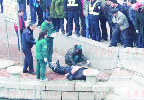 随后,消防人员与医护人员赶到现场,开始设法对男子进行营救 ,大约过了5 分钟,男子被打捞上岸。记者走上前,看到一大团血从被救上岸的男子口鼻中“呼啦”冒出来,男子的脸色已经铁青,估计已经溺水很长时间了。